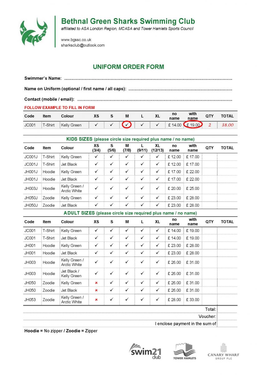 All swimmers who participate in age groups must buy the club T-shirt and/or hoodie as a minimum.