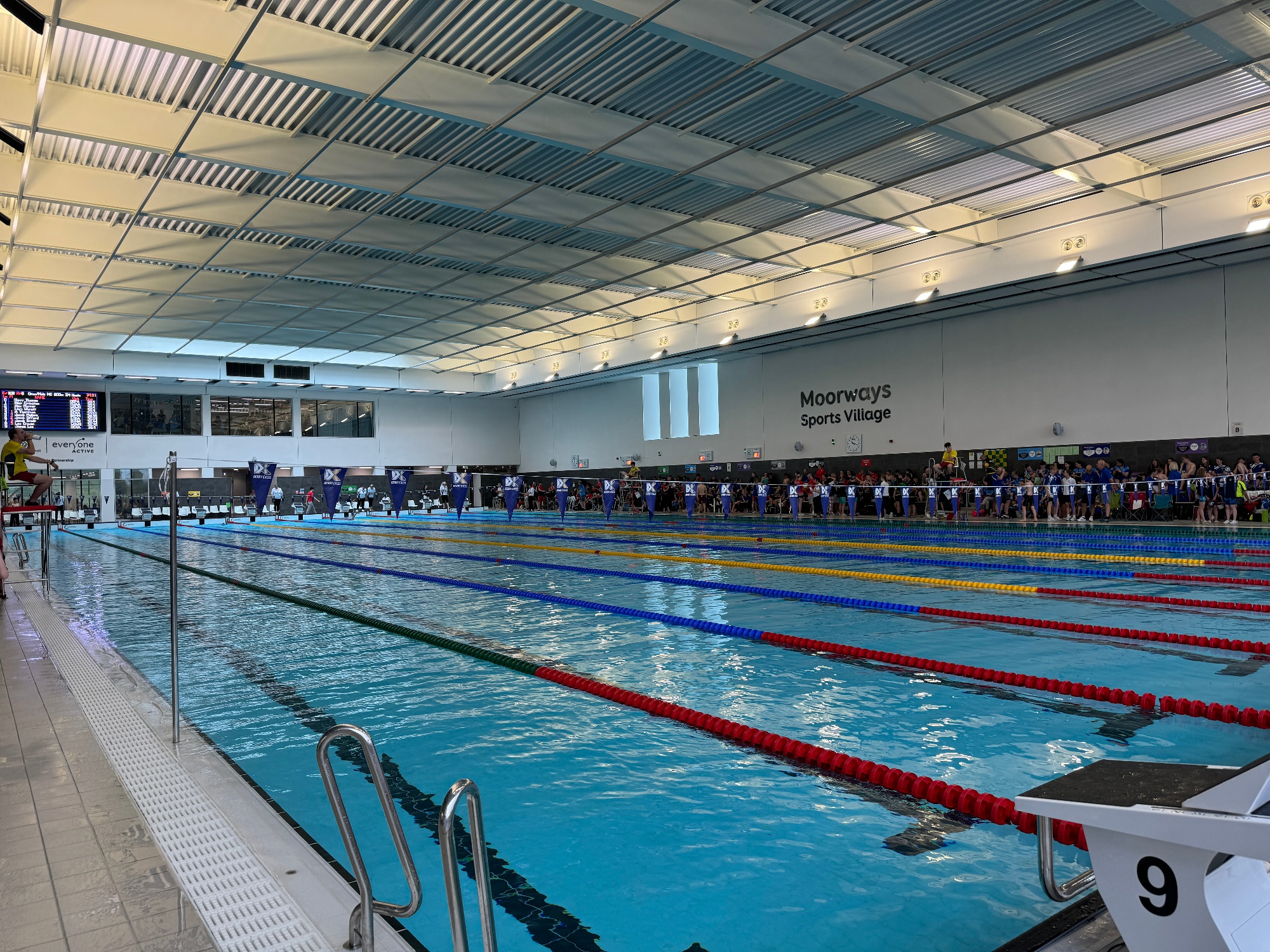We hosted our last meet of the season last weekend at Moorways, a 50m level 3 meet which attracted entries from as far afield as Birmingham, Billingham (near Middlesborough), Liverpool, Rotherham and Warrington as well as swimmers from within the county such as Belper, Swadlincote and Chesterfield. The meet was full, which is testament to our reputation for delivering excellent meets which are very popular with visiting clubs and coaches. The queue of spectators stretched from the admissions desk outside the balcony right the way out to the revolving doors and beyond, as family and friends came in numbers to support their swimmers.