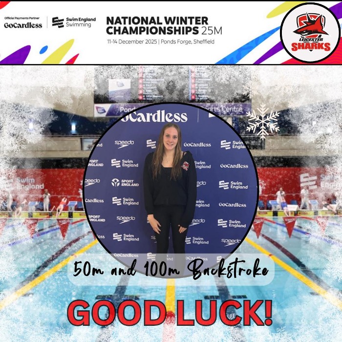 Good luck to Sarah Dew as she takes on the 100m and 50m Backstroke at the Swim England National Winter Championships in Sheffield this week! 🍀🦈