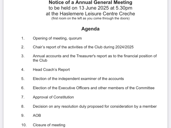 We are looking forward to seeing you at the club AGM this Friday 13th June at 5.30pm.