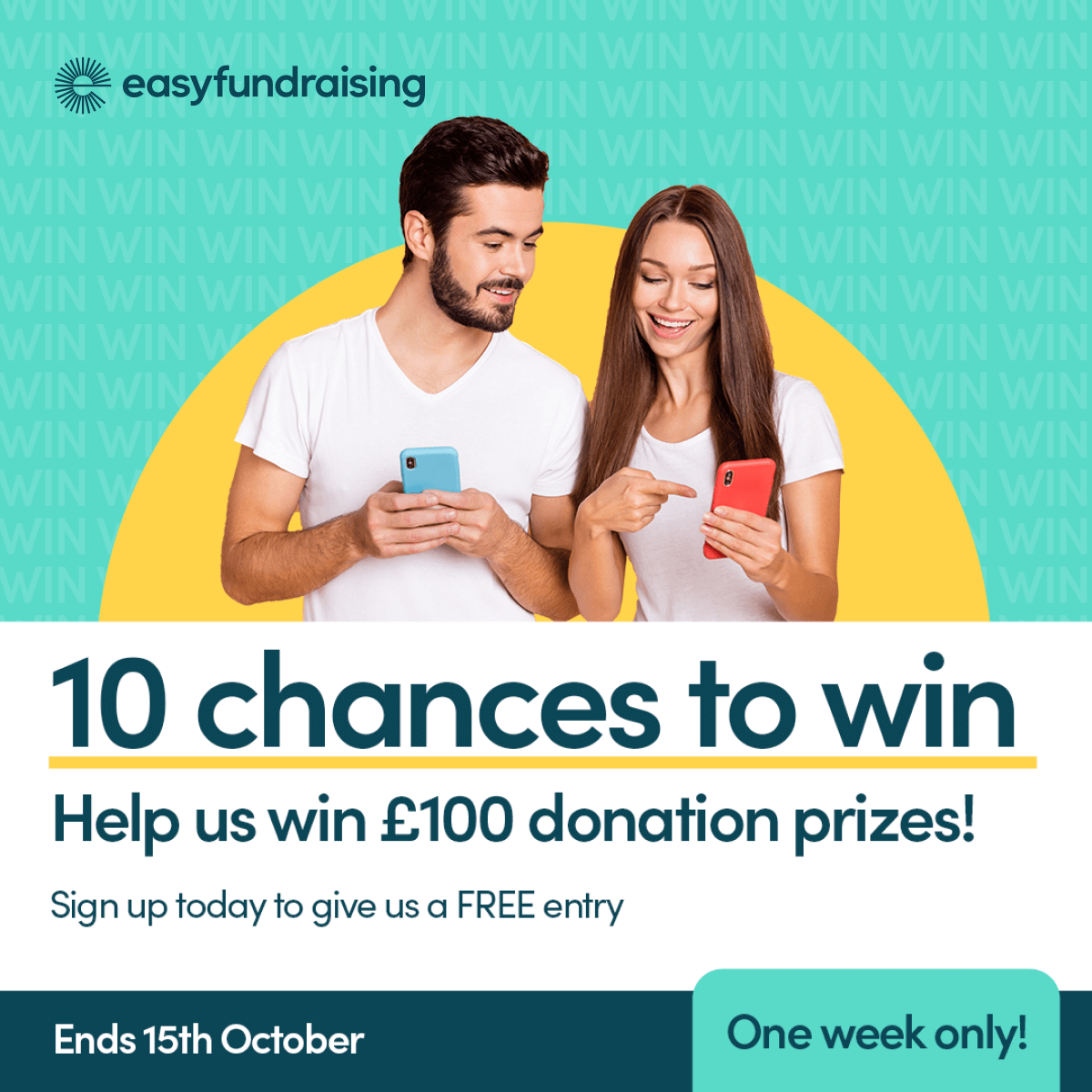 And if you sign up before the 15th of October we will be entered into a prize draw to win 1 of 10 £100 donation prizes, so don't delay sign up today.