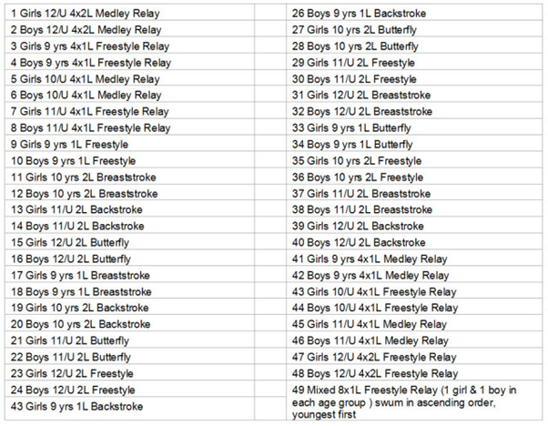The Junior Swim League galas take place in April, May and June in each season.