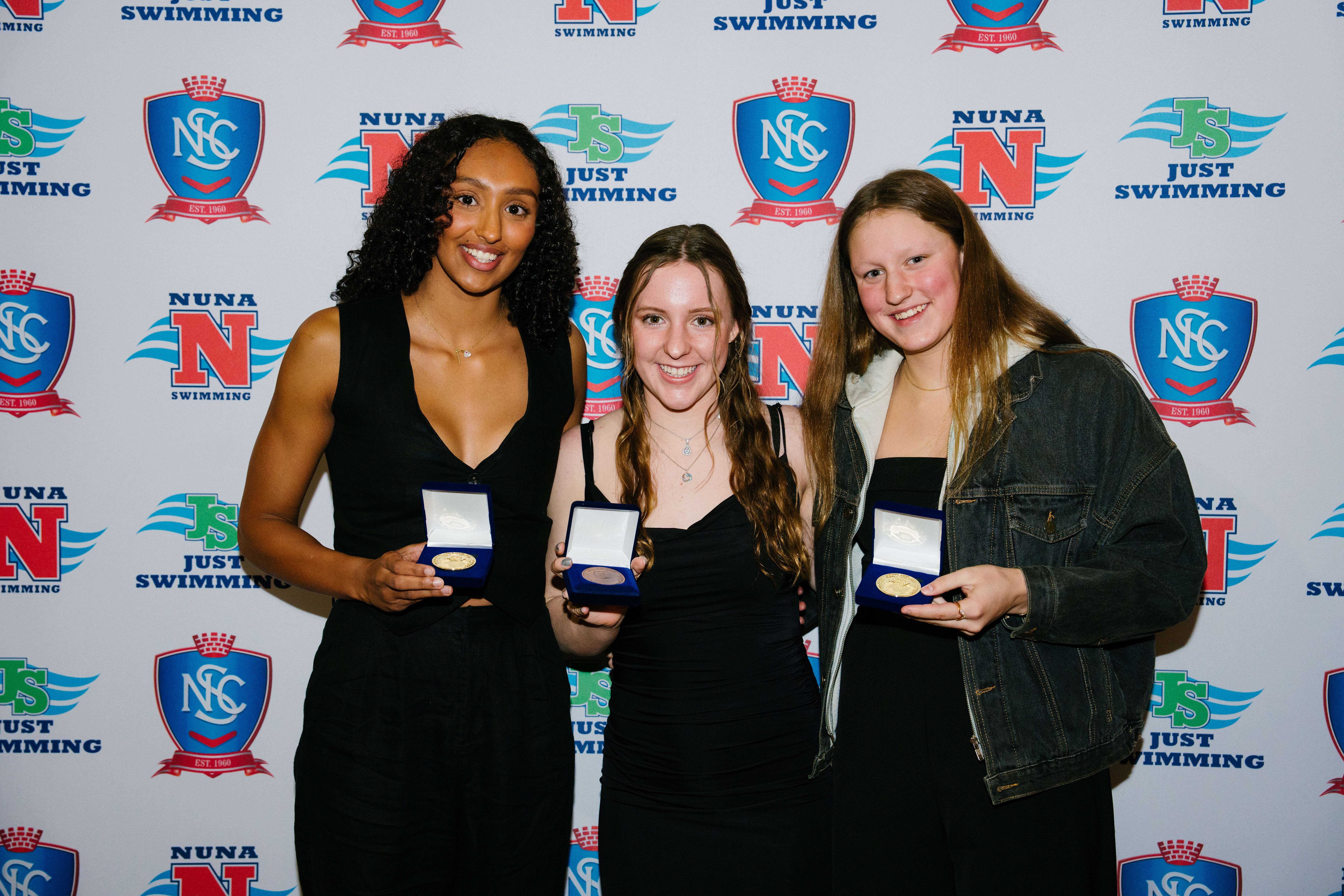 2023/24 15 years & over female Club Championship Award Winners Semra Olowonoiyi, Courtney Mudge & Dakoda Mathers