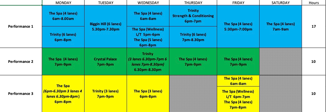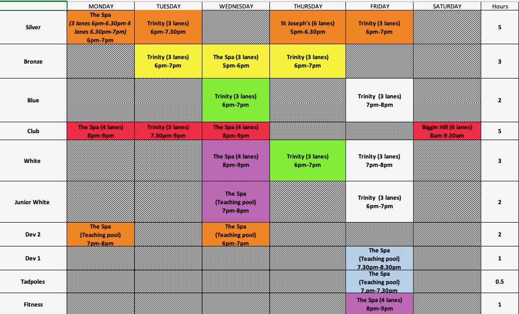 Current whole club training schedule