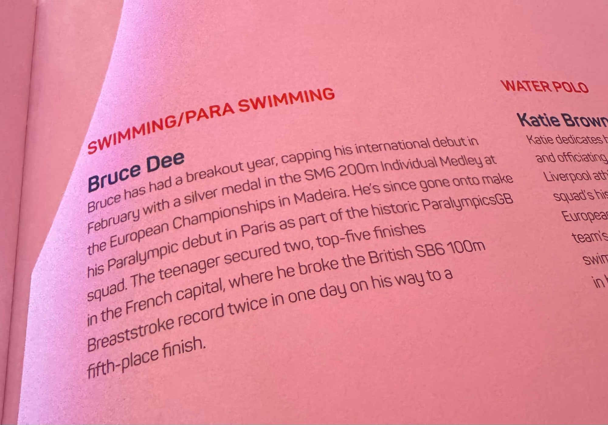 In 2024 Bruce has won his first major medal at the European Championships in Madeira winning a in the SM6 200m IM and then went onto make his Paralympic debut at the Paris Paralympic Games where he finished 4th in the SM6 200m IM and 5th in the SB6 100m Breaststroke breaking 2 British records along the way!