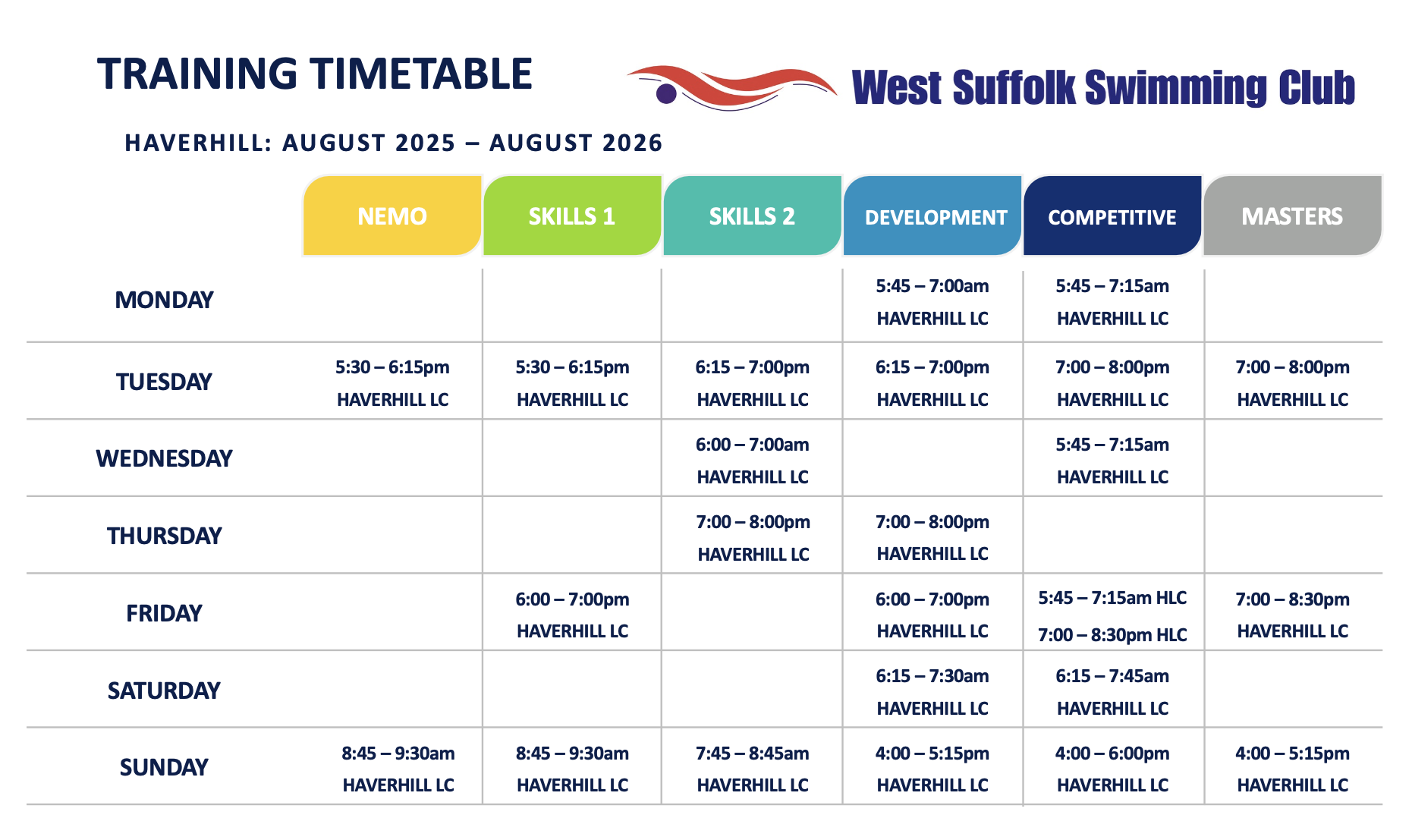 Squad Timetable for Haverhill 2025 / 2026
