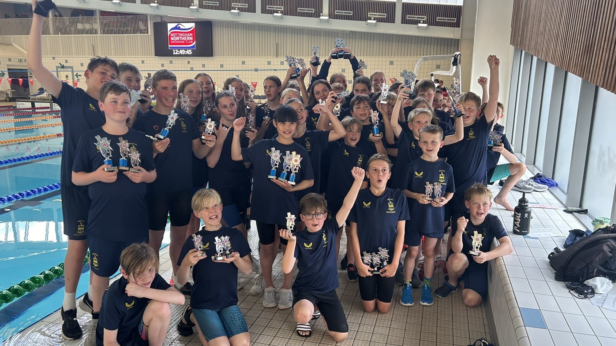 On Sunday, Repton’s Development Pathway headed to Nottingham for the 46th Nottingham Northern Open Meet. We had 55 swimmers attending and competing in events from 50m up to 200m IM. 6 swimmers represented the club for the first time in an external environment. Over the course of the day, swimmers received a number of trophies for their placings in individual races. This accumulated in Elsie Hatton winning overall top female, and Repton Swimming winning overall Top Club.