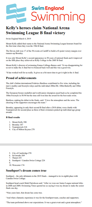 We are proud of what we have achieved as a small local community Swimming Club. And we will continue to aim big and create another 100 years of success and achievements.