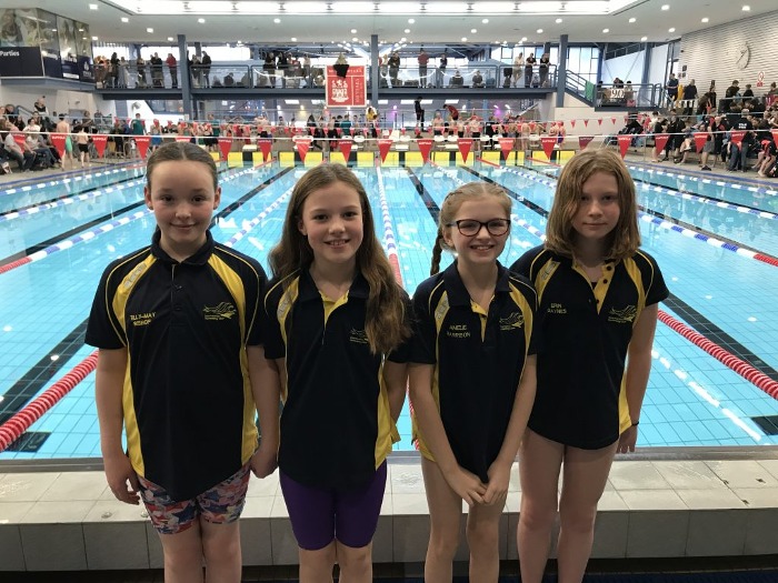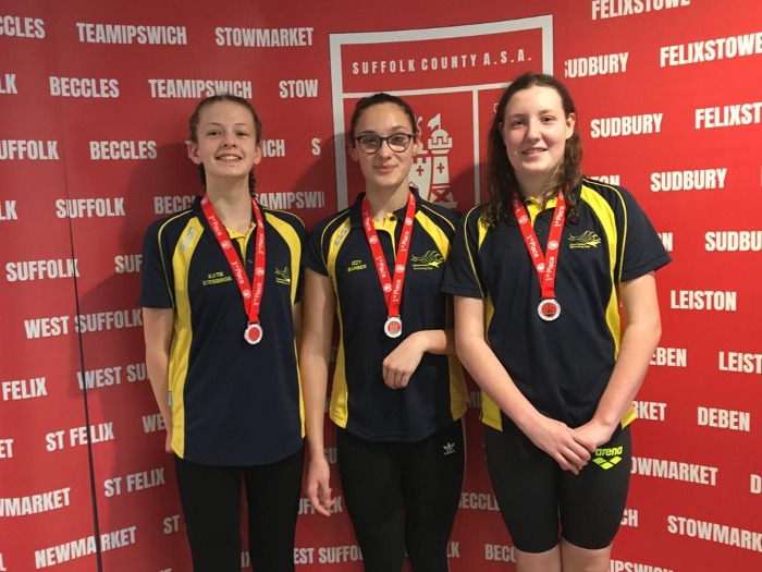 Best Team Mates , Katie Izzy and Becca proudly display their medals achieved in the 400m IM Well Done Girls.