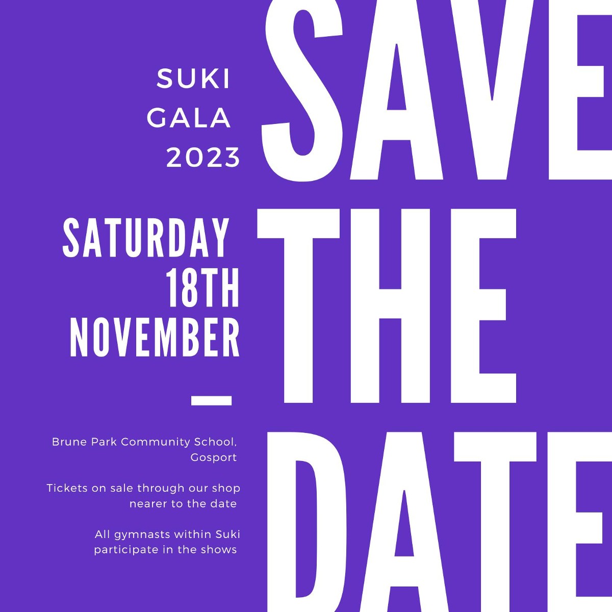 Suki Gala is where every gymnasts within the club perform themed class routines to their family and friends. We perform two shows - one morning and one afternoon one. The majority of the gymnasts perform in both, however we will decide if the 4 - 5 year olds will only do one show instead of two. This will be confirmed closer to the date. Tickets to watch will go on sale closer to the event and at first will be restricted to an amount per family. After a set day, any remaining tickets will go on general sale for extended family members to purchase. We do this so that all gymnasts have the opportunity to have at least one member of their family there to watch.
