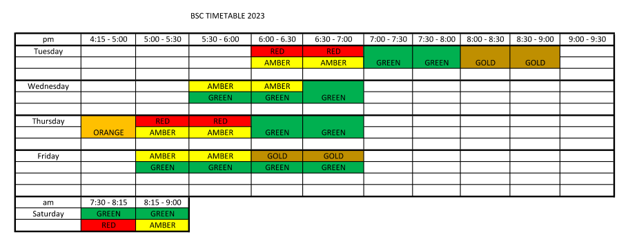 • Squad Training Timetable