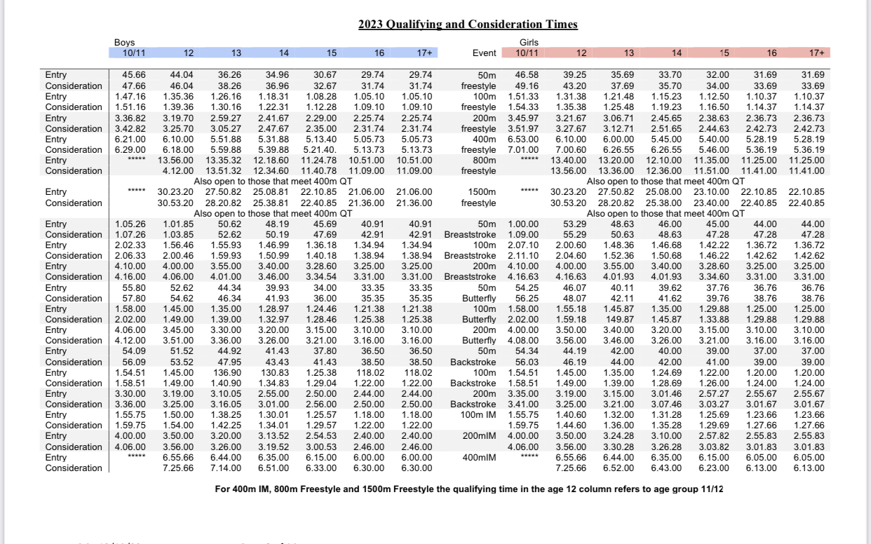 Swim England South West Regional Qualifying Times
